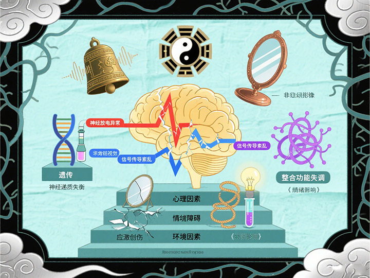 机制:压力或疲劳导致大脑功能紊乱,或心理因素放大感官信号。